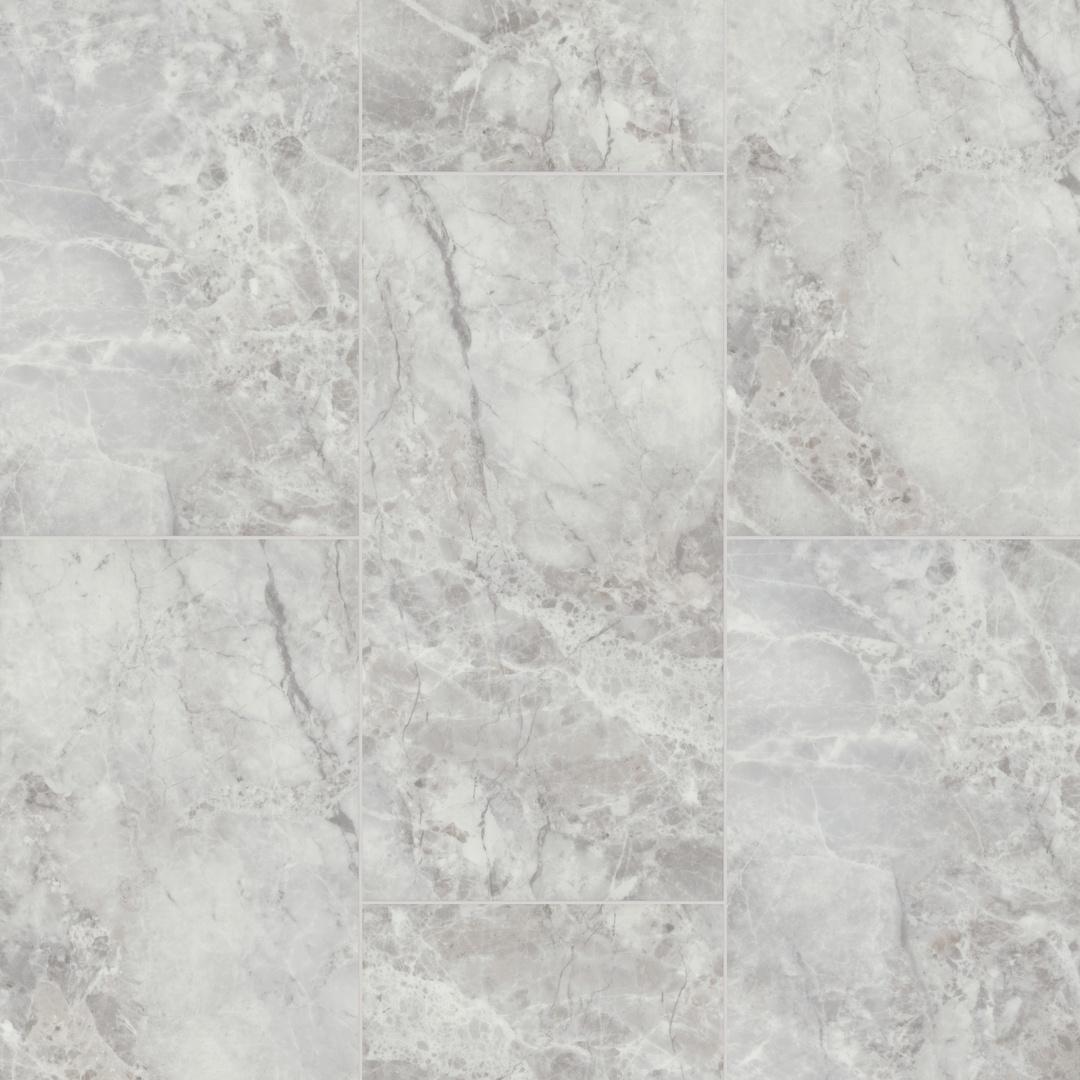 Кварцвиниловая плитка LVT Роквокс с мраморной полуматовой текстурой имеет светлый молочный оттенок, он создает ощущение простора и наполняет помещение мягким и теплым светом.