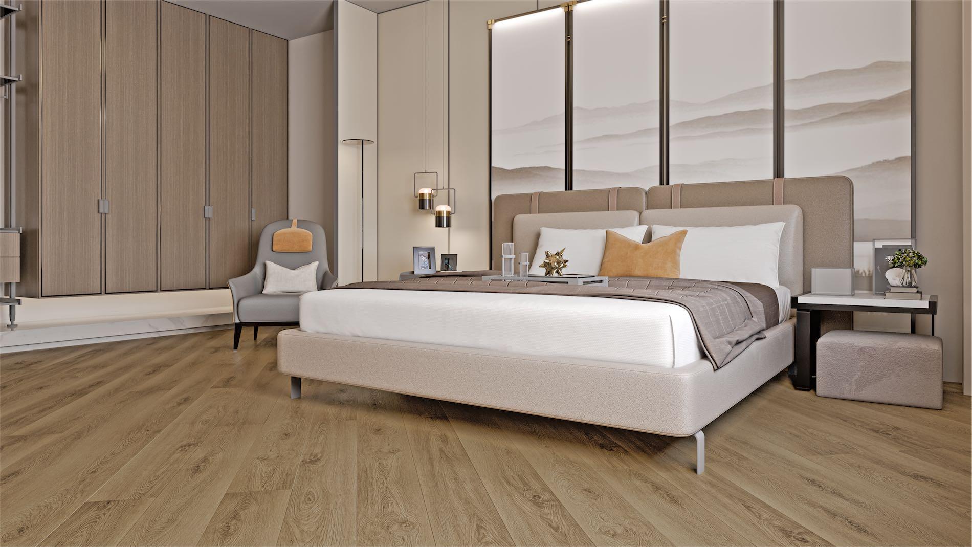 Каменно-полимерный ламинат SPC Grand Sequoia ECO 11 толщиной 4 мм станет отличным вариантом для современных квартир с невысоким уровнем проходимости, спальных комнат или гостиных.