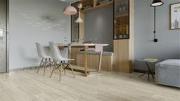 Напольное покрытие «Сонома» выполнено в светло-сером цвете с бежевым оттенком. Такое цветовое решение создает ощущение тепла и домашнего уюта, делает помещение более просторным и светлым. Текстура дерева акцентирует внимание на натуральности и экологичности материалов, что делает этот ламинат отличным решением для скандинавского и эко-стилей. Светлые оттенки натурального дерева подойдут к большинству современных интерьерных решений.