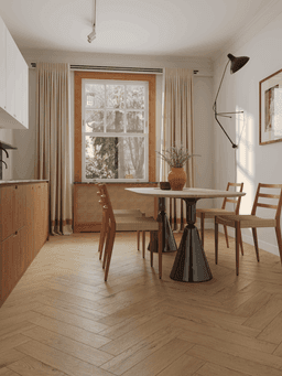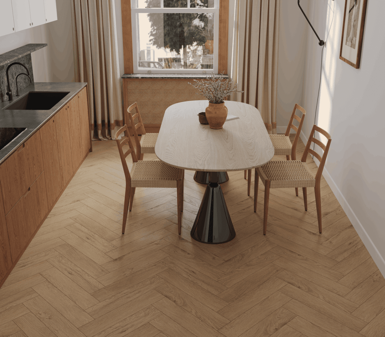 NORLAND PARQUET S 1055-22 Valena напоминает натуральный срез дуба в теплой светло-коричневой гамме с мягкими темными акцентами. Полуматовая поверхность бережно передаёт уникальную структуру древесины, добавляя покрытию глубины и выразительности. Тиснение подчеркивает рисунок и фактуру покрытия, формируя целостность и завершённость образа интерьера.