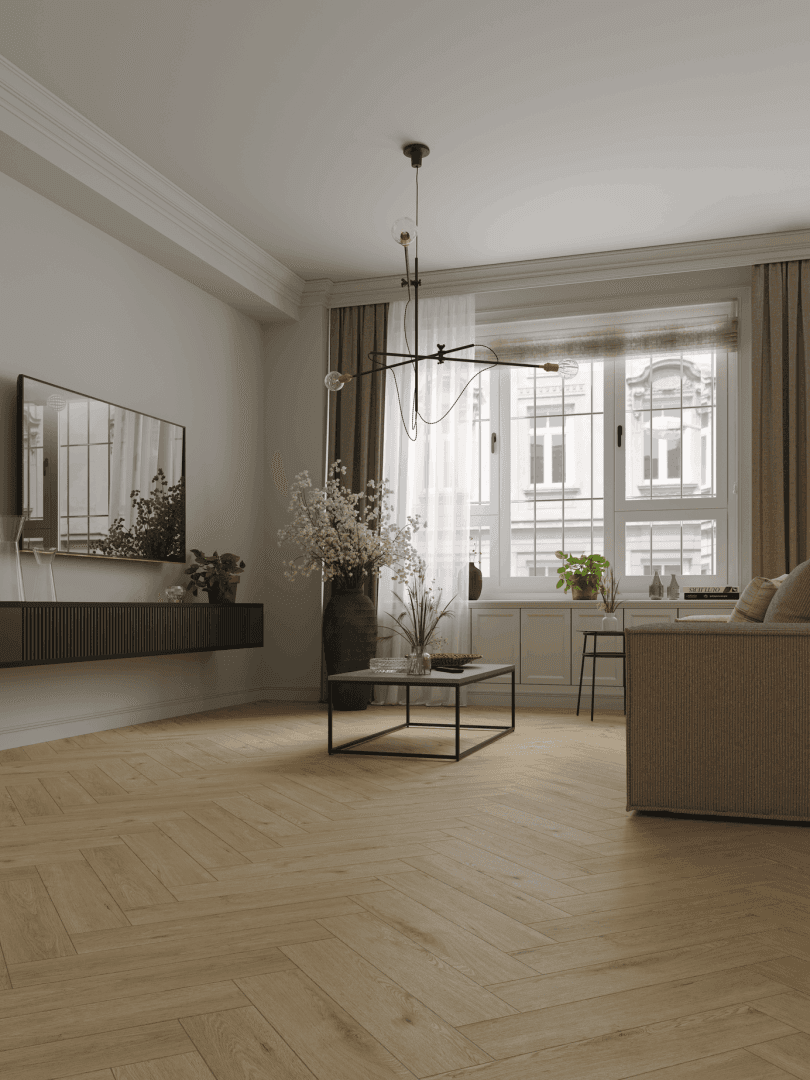 NORLAND PARQUET 1066-6 Clear Room характеризуется мягкой игрой цветов от светлого коричневого до теплого бежевого, отображающей все совершенство натуральной древесной текстуры. Такой оттенок прекрасно подходит для жилых пространств в современном стиле, легко комбинируется с мягкой мебелью лаконичных форм, деревянными изделиями темных пород и текстильными элементами в нейтральной гамме.
