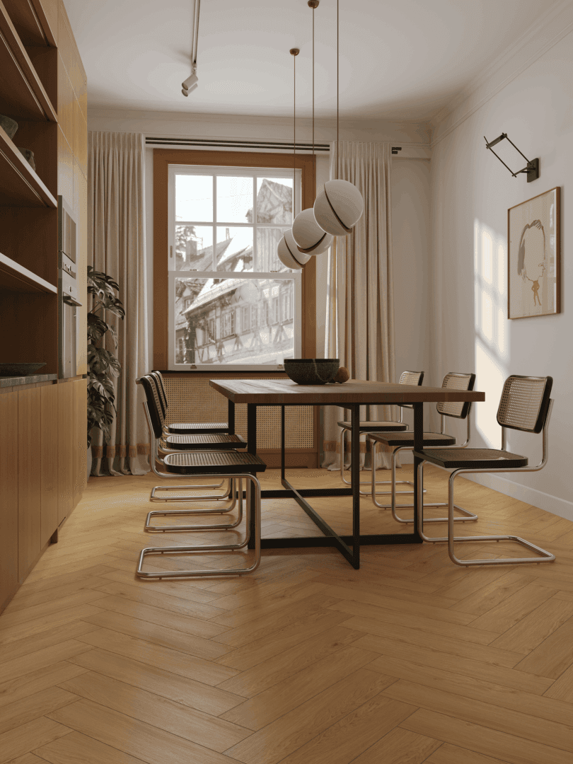 NORLAND PARQUET 1066-8 Simple Seal выделяется привлекательным песочным оттенком и мягкой текстурой древесины. Полуматовая фактура подчеркивает глубину оттенка. Данный оттенок универсален и способен оживить любую комнату, будь то классический интерьер гостиной или минималистичный проект кухни. Прекрасно соседствует с металлом, ротангом и однотонной мебелью в теплых тонах, формируя целостный образ современного дома.