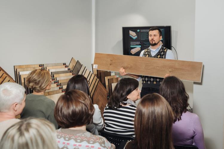 Центральным элементом вечера стала яркая презентация новинок бренда, которую провел тренинг-менеджер Alpine Floor Александр Гришин. Он не только подробно рассказал о ключевых коллекциях и их уникальных свойствах, но и наглядно показал, как с помощью фактур, оттенков и форматов укладки можно воплощать в жизнь самые смелые проекты, отвечающие теме «Мысли и чувства». Гости получили исчерпывающие ответы на все актуальные вопросы, касающиеся как трендов, так и практических аспектов применения материалов.