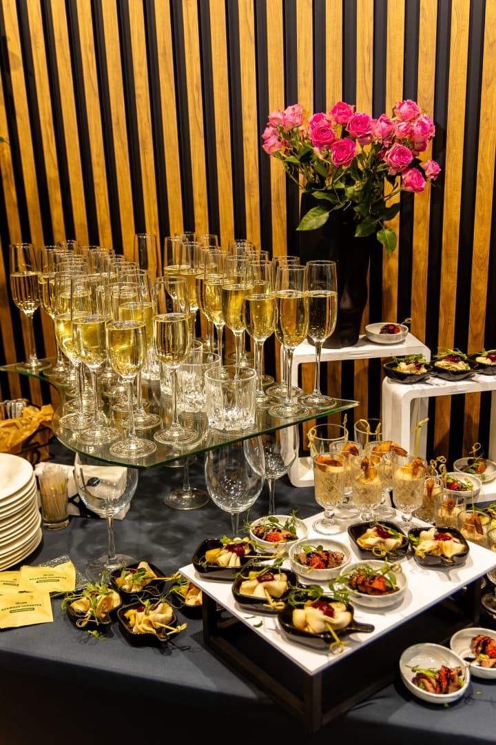 Форматом мероприятия был выбран праздничный фуршет, а тональность и настроение задавала тема «Вино, винил и кварц-винил».