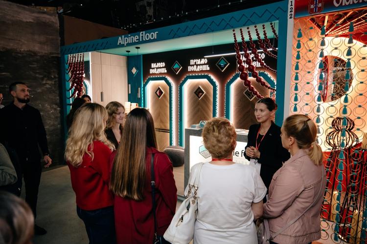 На стенде можно было ознакомиться со всеми образцами, ощутив материал в своих руках, и задать любые интересующие вопросы экспертам Alpine Floor.