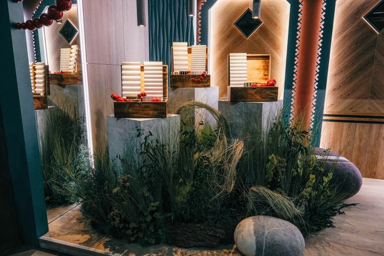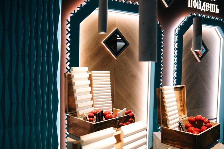 Бренд напольных покрытий Alpine Floor показал свое видение современного русского дизайна и стал центром притяжения для участников и гостей мероприятия. Стенд будто бы переносил гостей в старинную русскую сказку, с резными узорами, яркими красными бусами, и волшебными ларцами с сокровищами. Концепция была в максимальном использовании продукции бренда, таким образом попадая на стенд гости сразу оказывались в самом центре выставочной экспозиции. Пол, стены, и даже ресепшен были выполнены из брендовых коллекций компании.