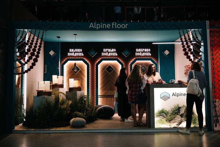 Концепция стенда была создана специально для Alpine Floor студией Room Line. Дизайнеры Екатерина Ерохина и Полина Андреева раскрыли весь потенциал современного русского дизайна и философию бренда Alpine Floor.